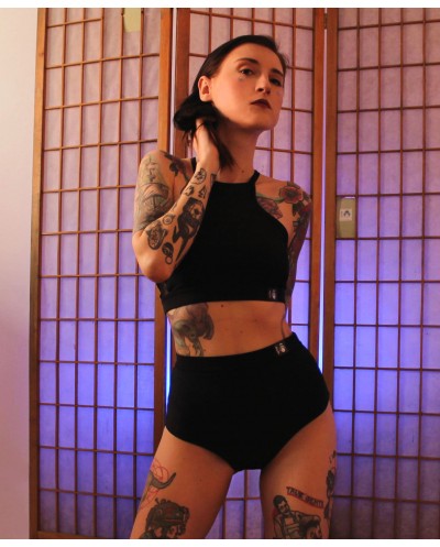 Spodenki Pole Dance z wysokim stanem. Himari to spodenki w stylu basic. Bardzo wygodne, o prostym kroju, idealne na co dzień. Spodenki odszyte są z lekko połyskującej, elastycznej lycry, przeznaczonej specjalnie na treningi i zajęcia taneczne. Wykończone delikatną, szybkoschnącą podszewką, która nie zatrzymuje wilgoci. Tył spodenek uszyty jest z marszczeniem pięknie podkreślającym pośladki. Pasek z gumką na wysokości talii przeszyty jest elastycznym ściegiem, dzięki czemu gumka nie będzie się przekręcać. Spodenki mają odpowiednią szerokość w kroku do każdej akrobacji, nie trzeba więc obawiać się szpagatów ;) Tył jest lekko wyprofilowany, delikatne odslaniający pośladki. Klasyczne spodenki Himari będą pasować do każdego topu.